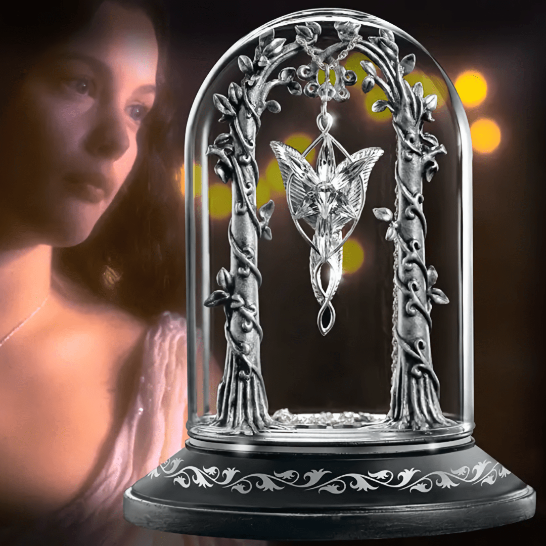 Le présentoir Étoile du Soir, inspiré de l’univers du Seigneur des Anneaux, est conçu en bois, étain et protégé par un dôme en verre. Avec ses dimensions compactes de 14 cm de hauteur et 11 cm de diamètre, il offre une présentation élégante et sécurisée pour mettre en valeur votre pendentif, non inclus. Cet écrin raffiné sublimera tout bijou tout en assurant une visibilité optimale.